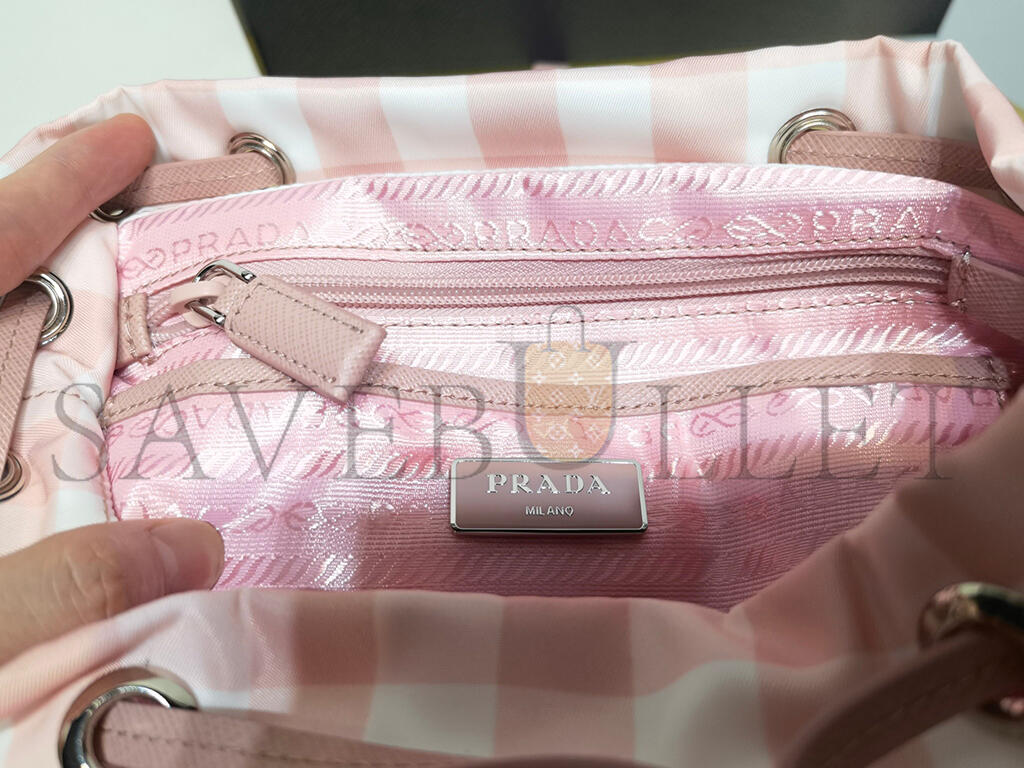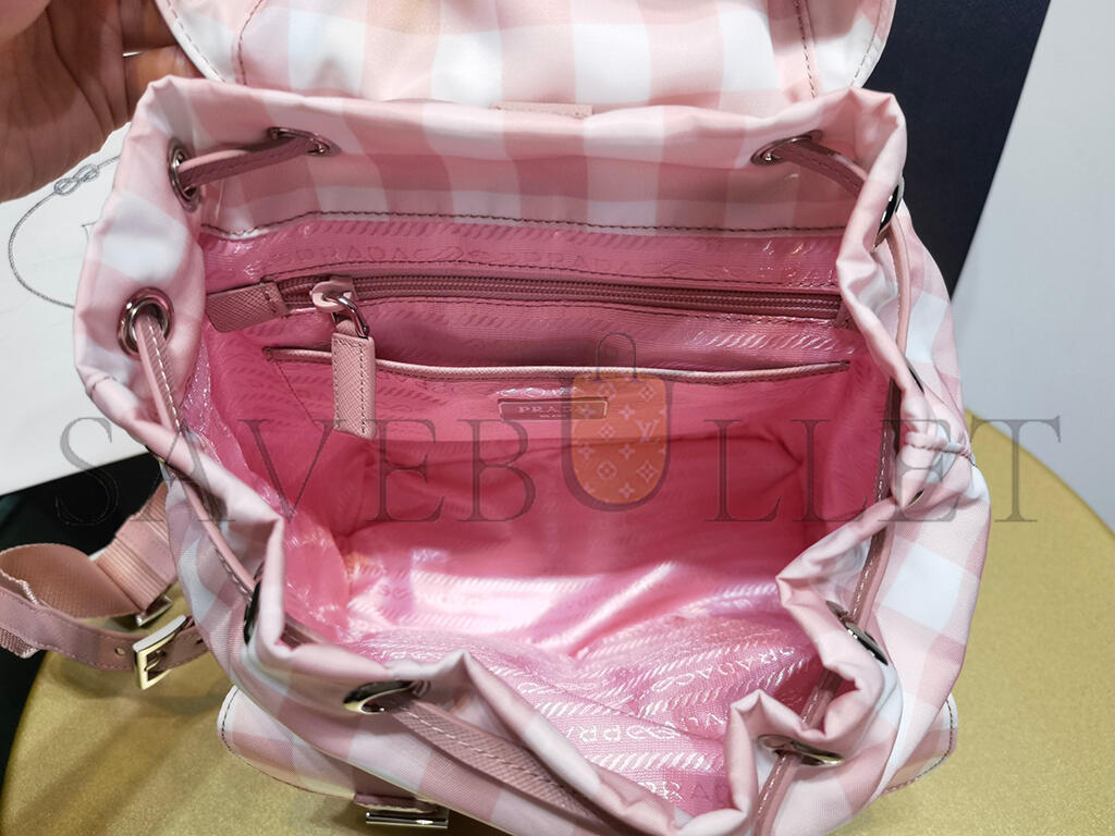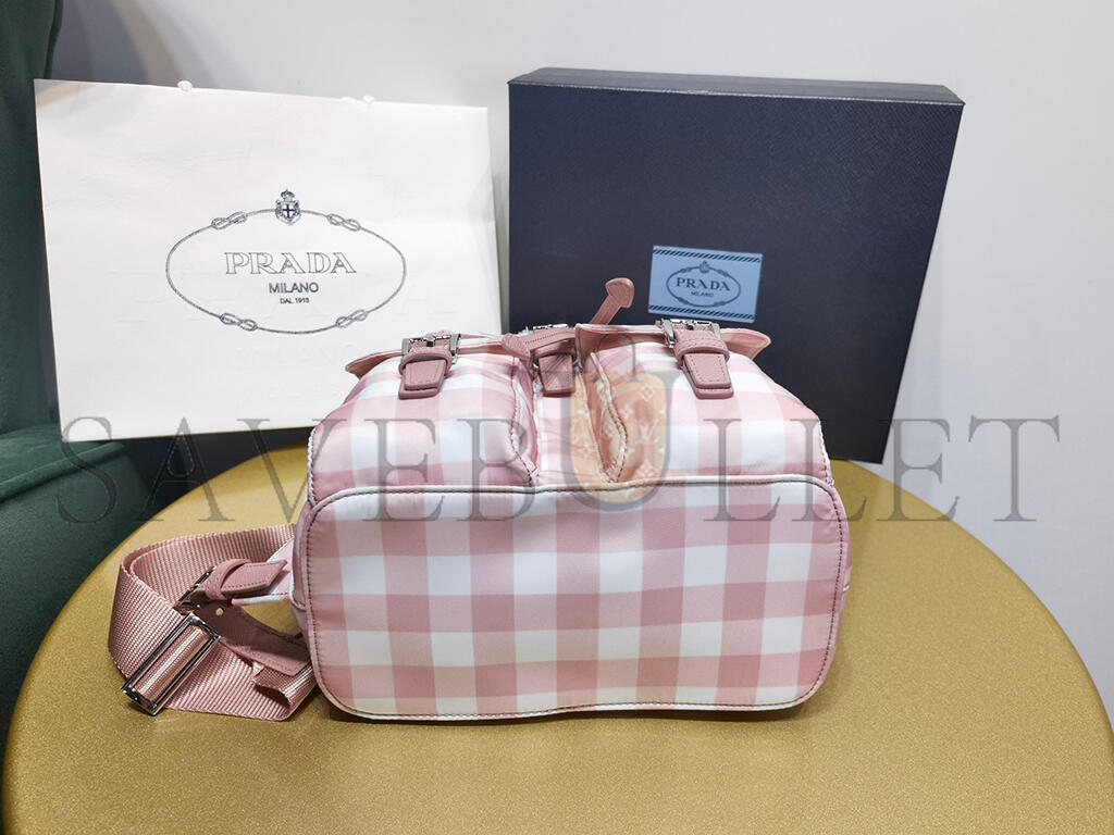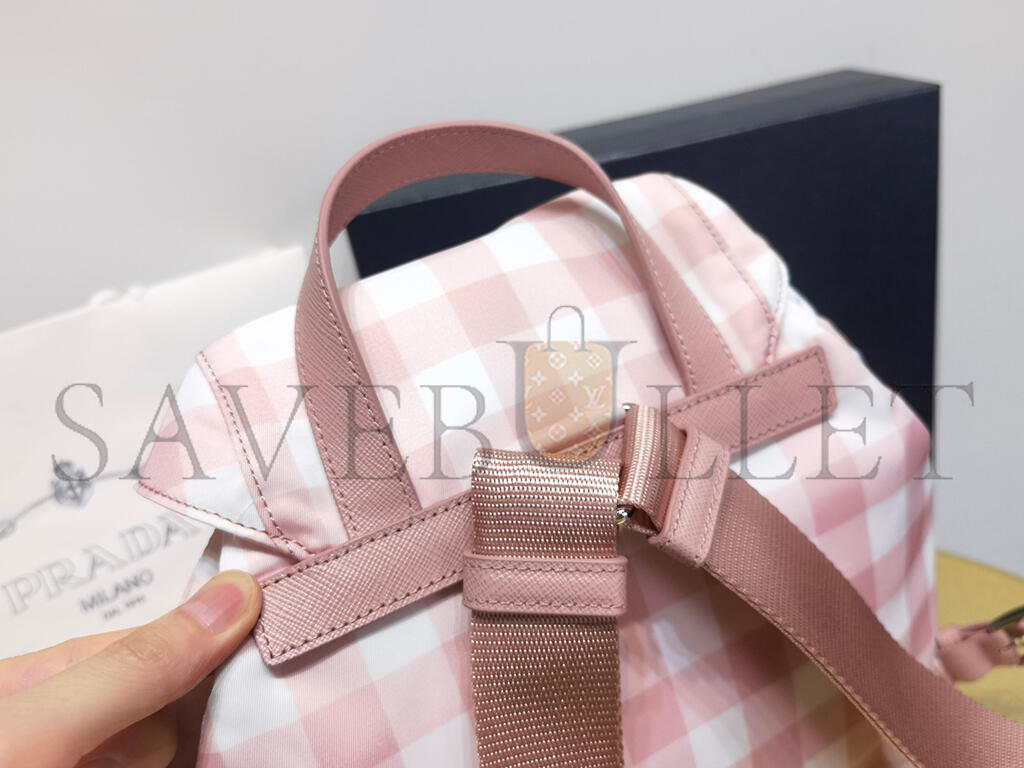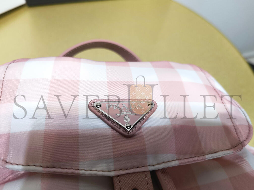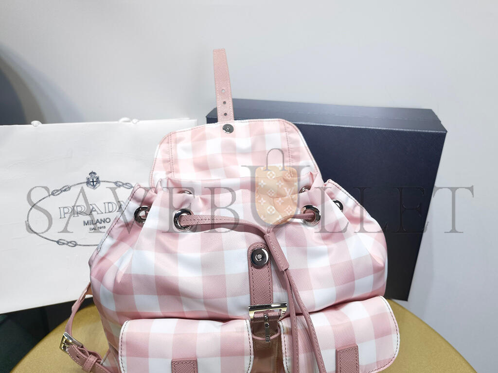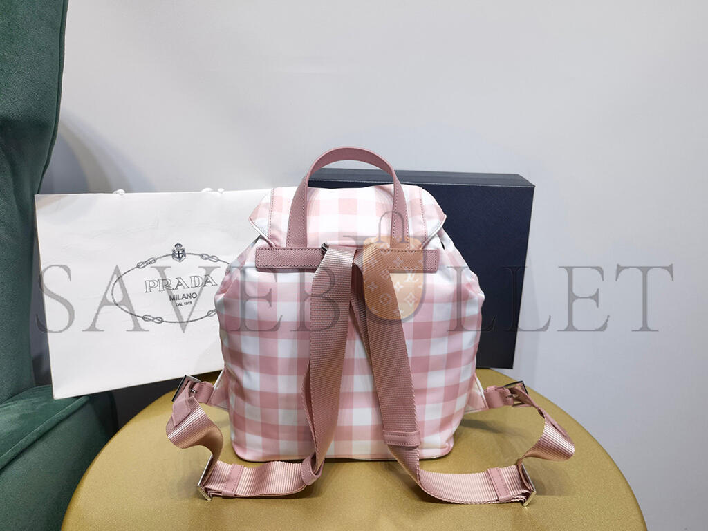 PRADA RE-NYLON SAFFIANO GINGHAM PRINT SMALL BACKPACK ALABASTRO 1BZ677 (28*23.5*12cm)