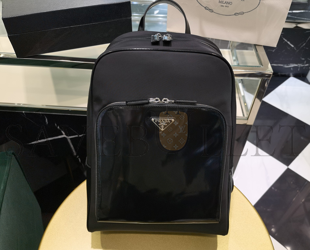 PRADA TRIANGLE LOGO BACKPACK IN RE-NYLON & LEATHER 1BZ005 (43*30*13cm)
