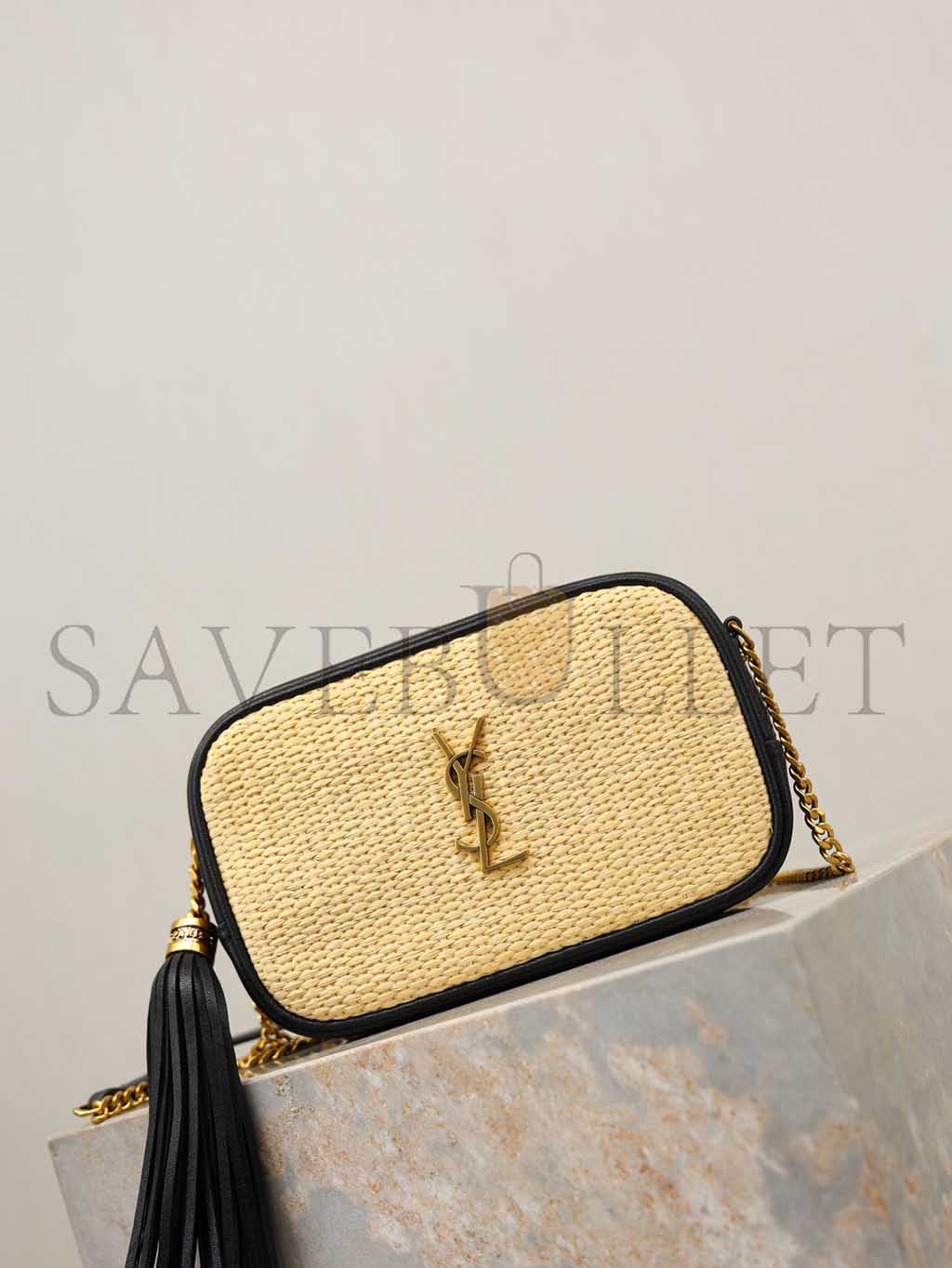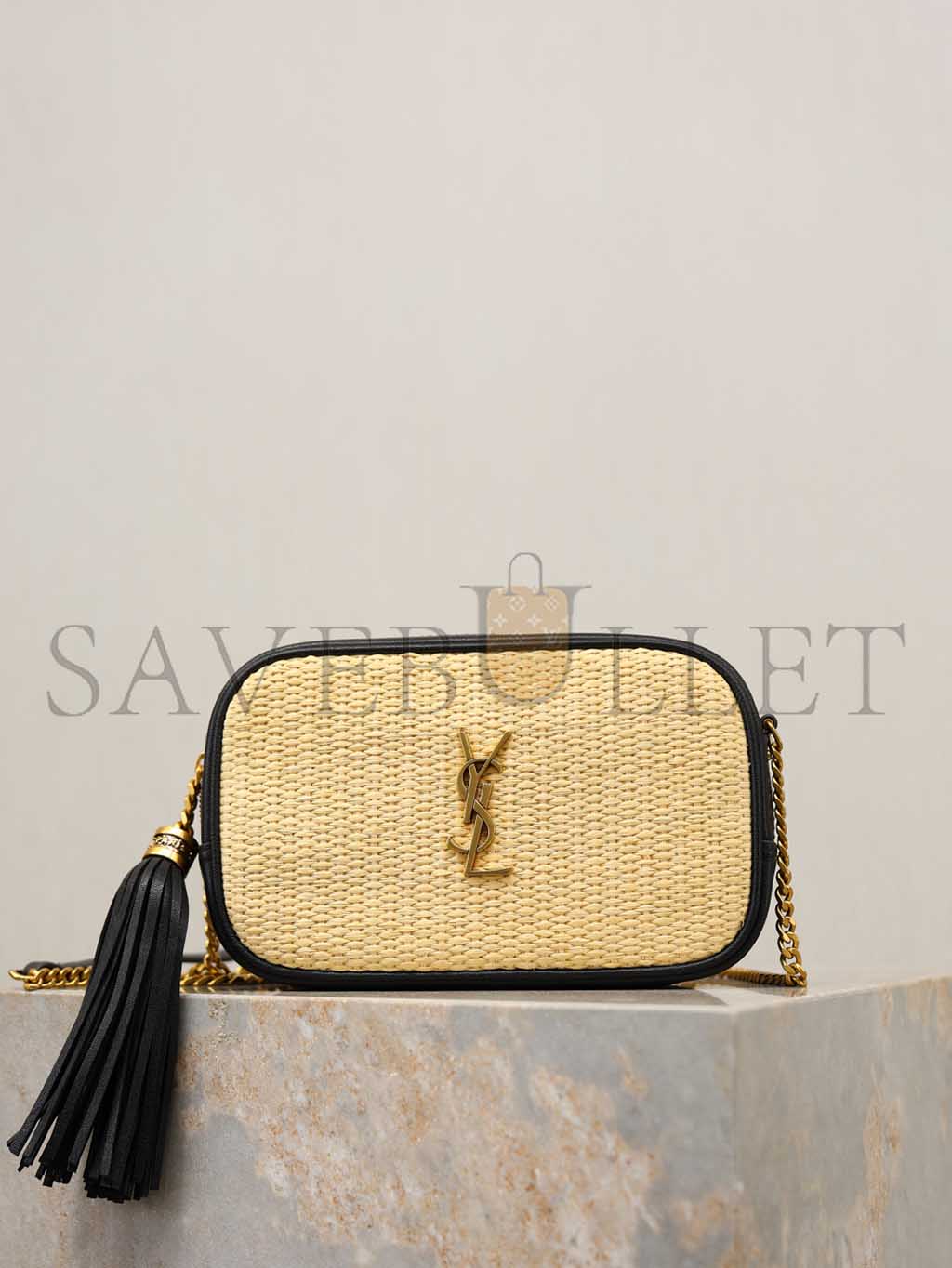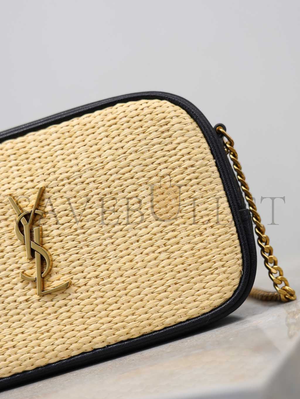 YSL LOU MINI YSL MONOGRAM RAFFIA CAMERA BAG 585040 (18*10*5cm)