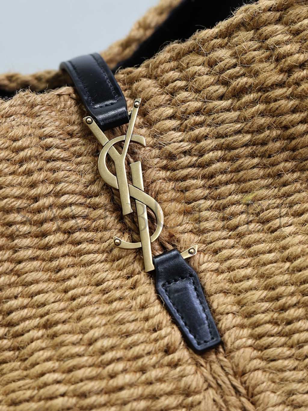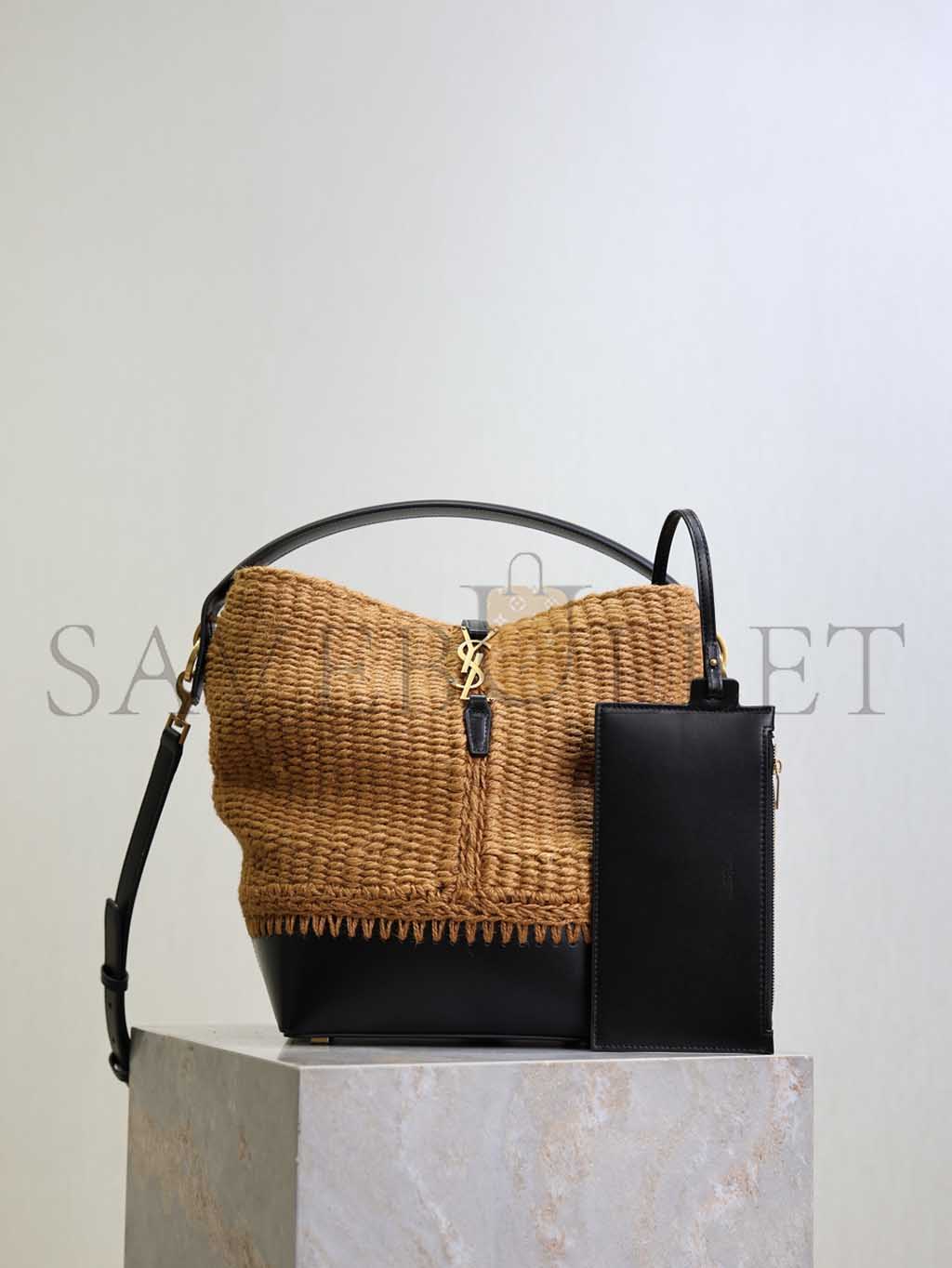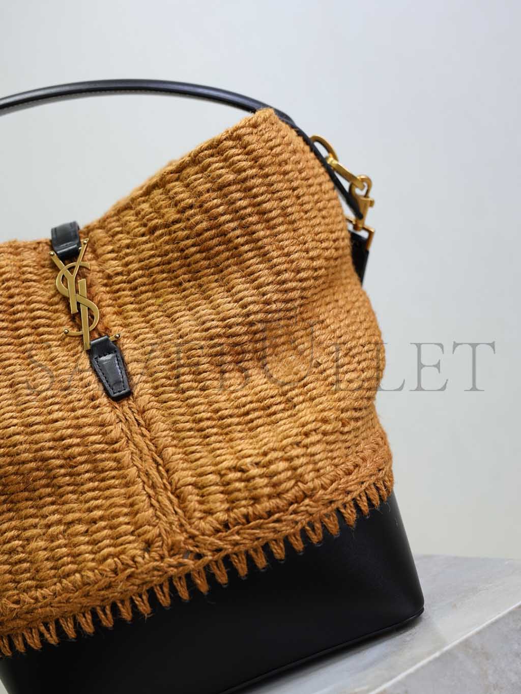 YSL LE 37 YSL BUCKET BAG IN RAFFIA AND LEATHER 742828 (25*20*16cm)