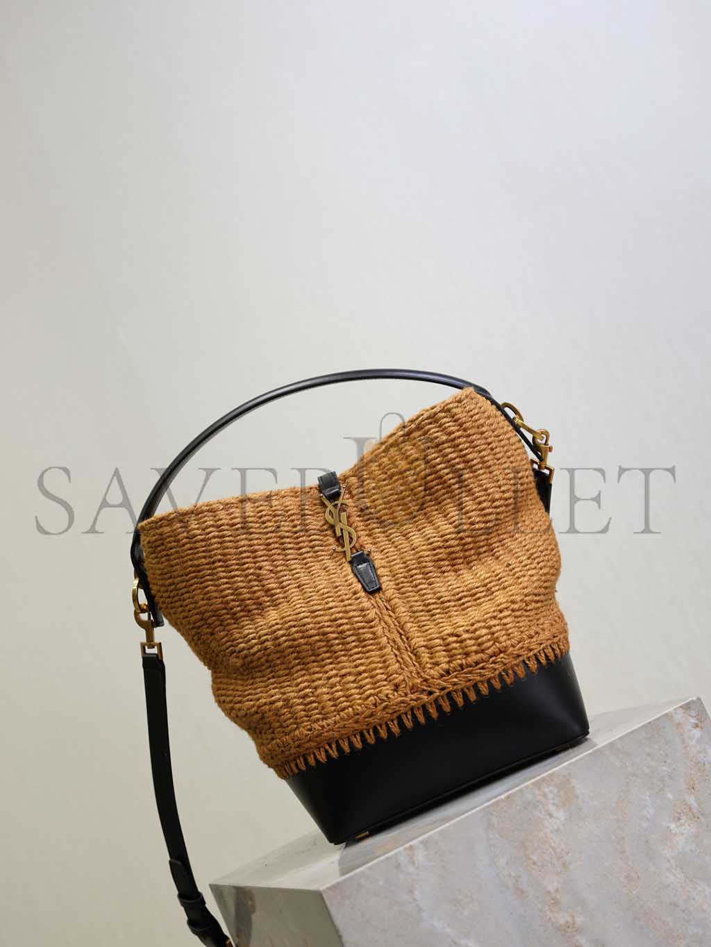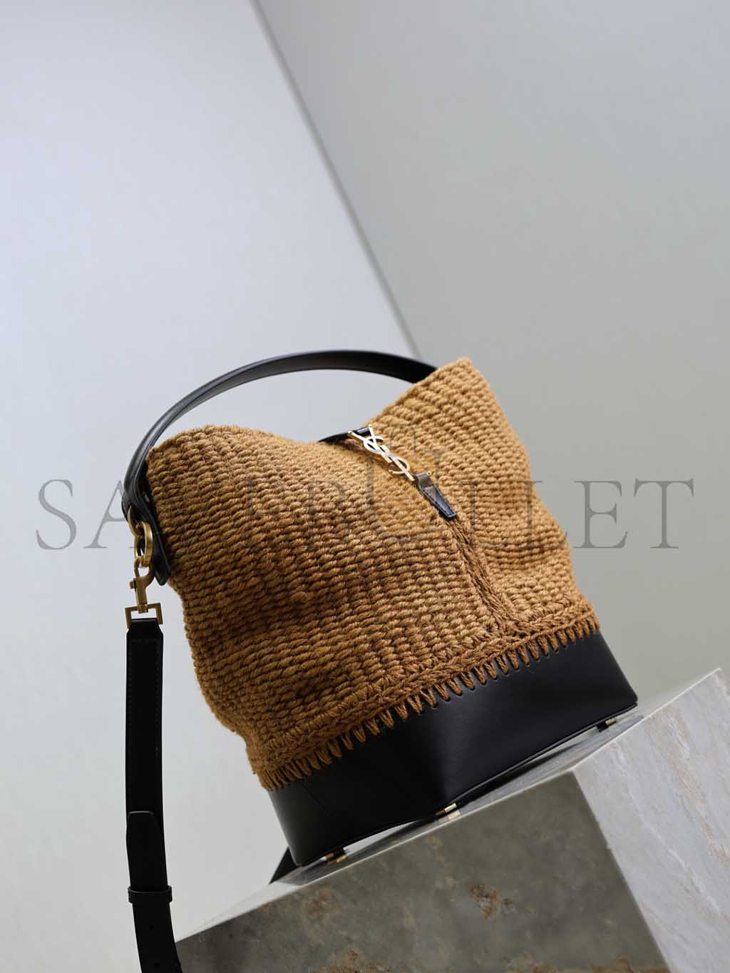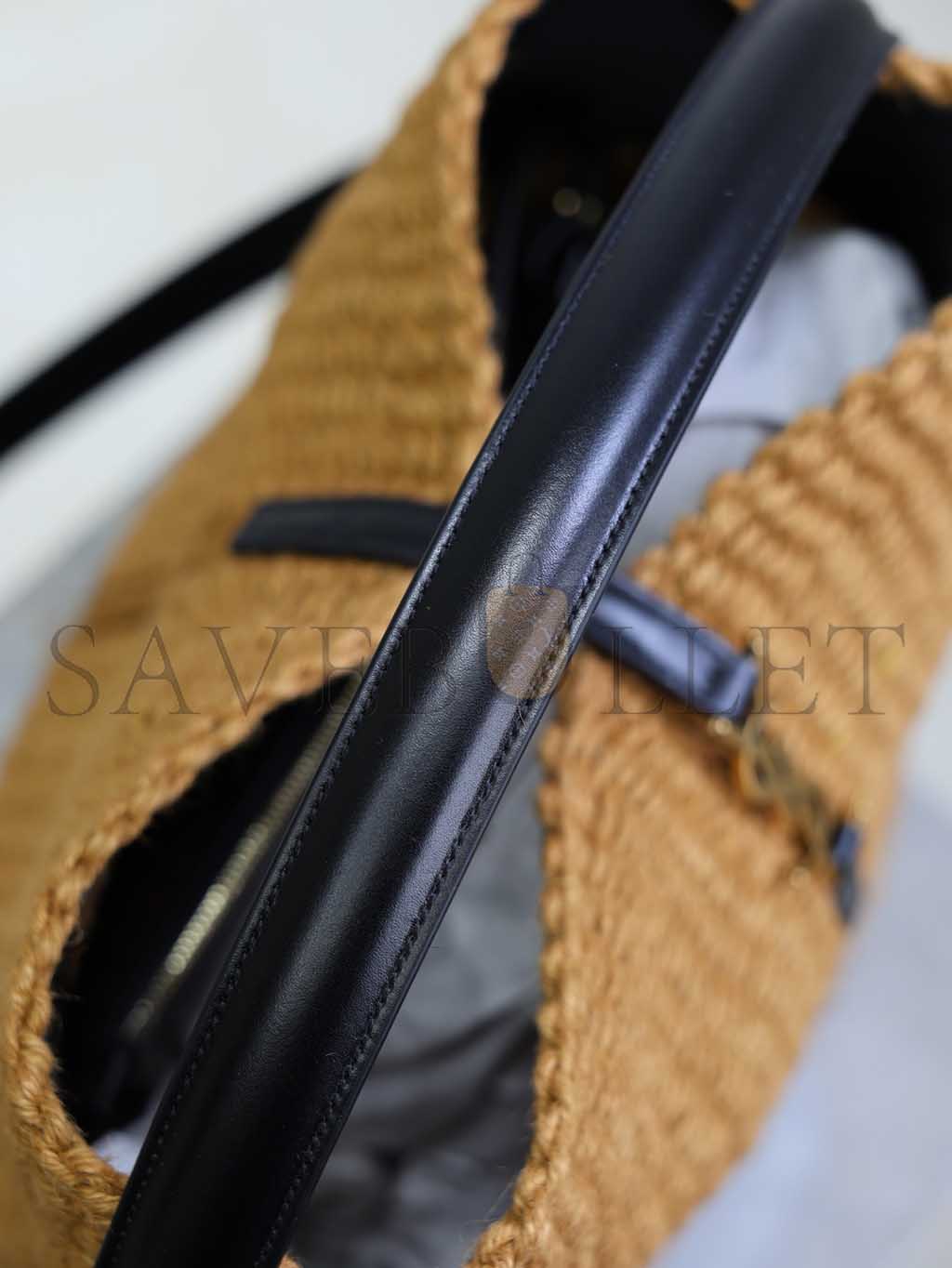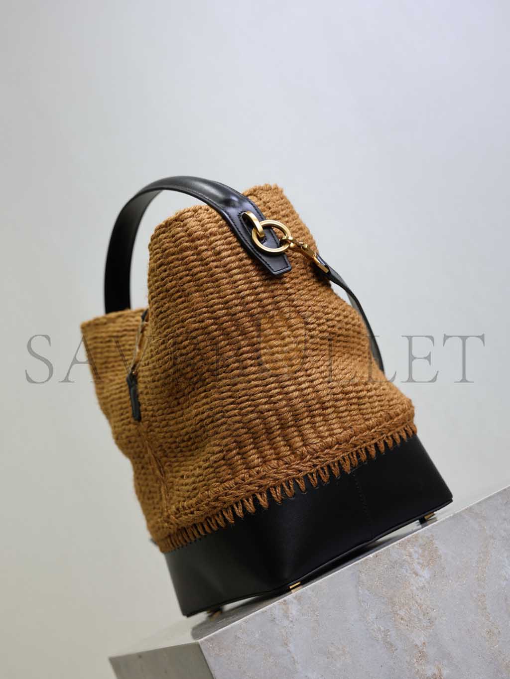 YSL LE 37 YSL BUCKET BAG IN RAFFIA AND LEATHER 742828 (25*20*16cm)