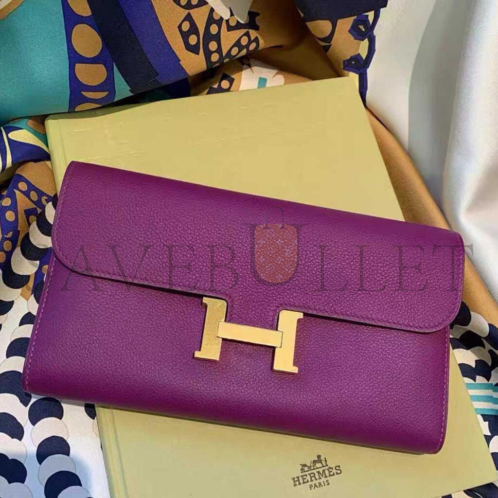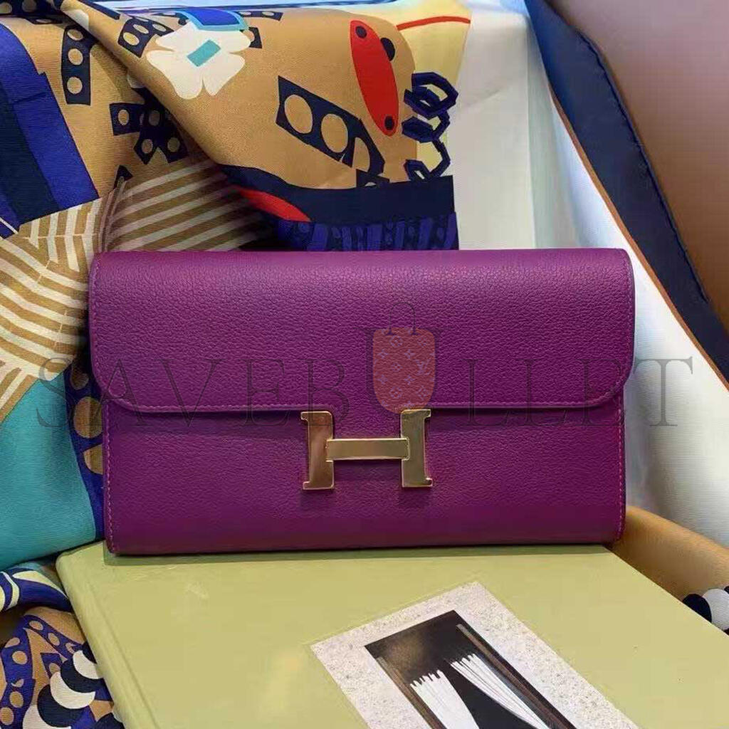 HERMES CONSTANCE WALLET TO GO EVERCOLOR GOLD HARDWARE (20*11*4cm)