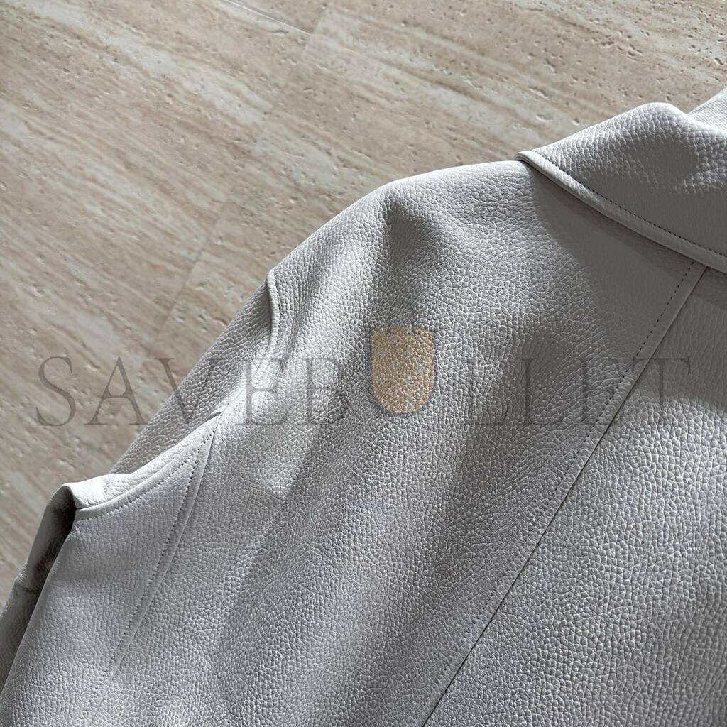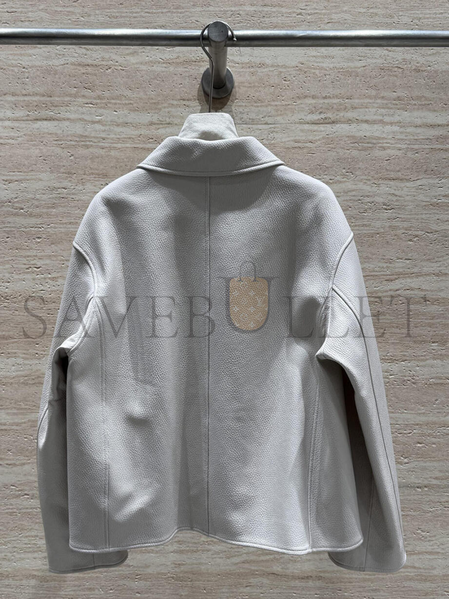 11.4 x 9.4 x 4.7 inches(Length x Height x Width)BeigeSuede leatherLeather trimLeather liningGold-toned hardware2 small inside flat pockets1 inside zip..